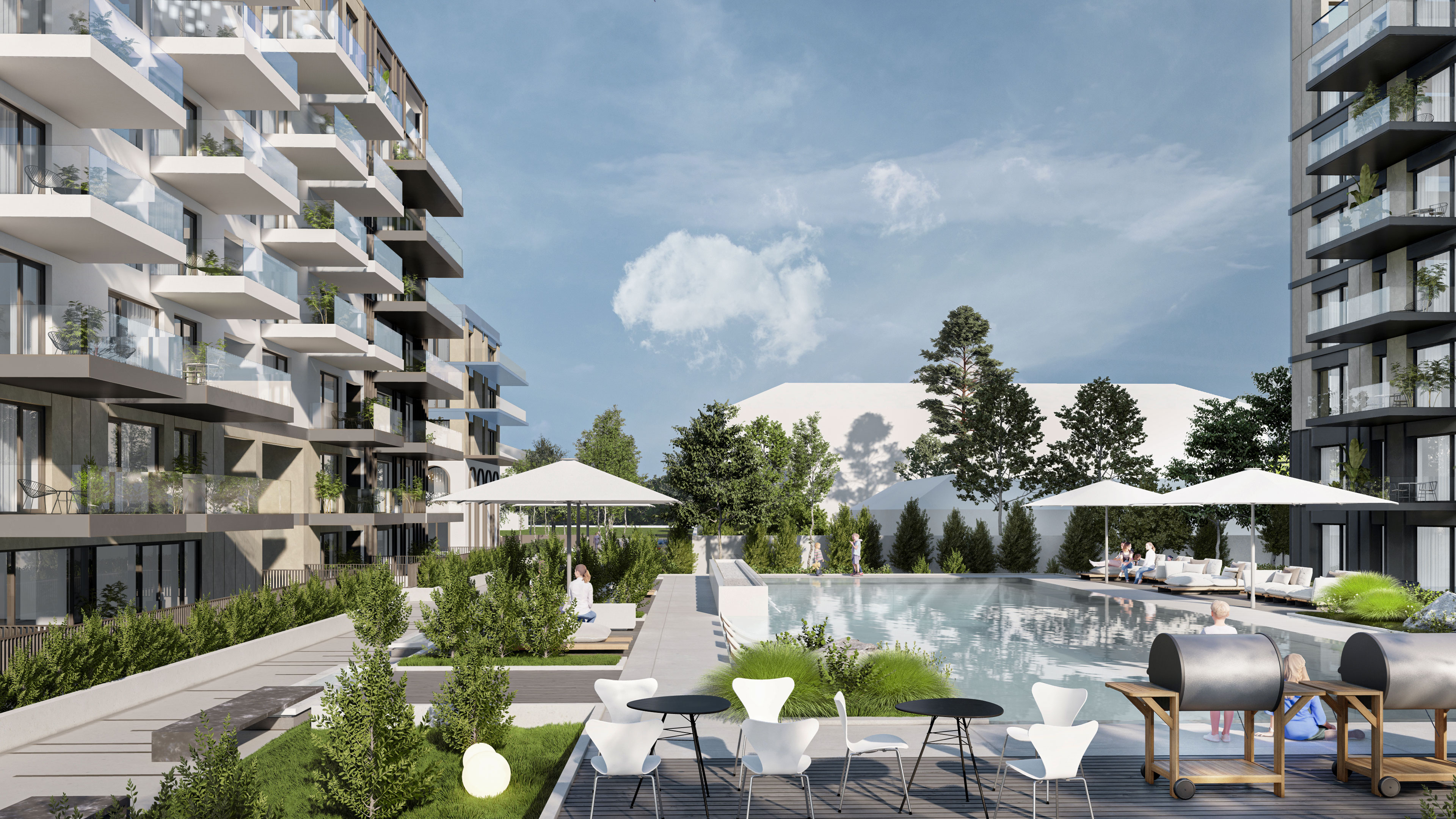 Bucură-te de escapade la piscina privată din interiorul complexului rezidențial, o oază primitoare, dotată cu zonă de barbeque. Aici, te poți relaxa pe șezlonguri, într-o atmosferă relaxantă, oferită de spațiile verzi bogate, incluzând grădina noastră englezească, sau poți găzdui serate de neuitat în aer liber.